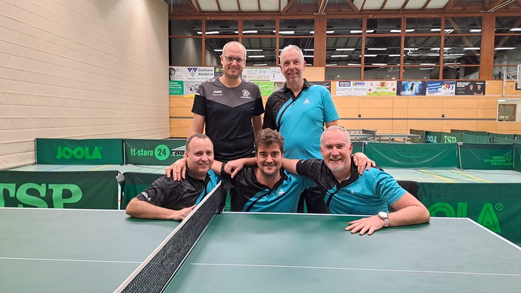 Unsere Senioren 1 bei ihrem letzten Vorrundenspiel (v. l. n. r.): Tobias Schulte, Manfred Preier sowie Markus Denz, Tobias Lohmüller und Matthias Förch